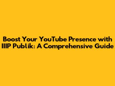 Boost Your YouTube Presence With IIIP Publik: A Comprehensive Guide