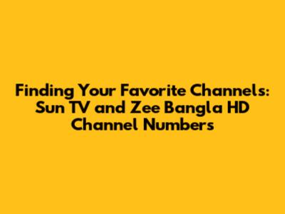 Find Sun TV And Zee Bangla HD Channel Numbers Easily!