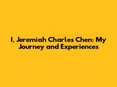 I, Jeremiah Charles Chen: My Journey And Experiences