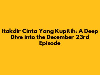 Hey guys! Let's dive into the Itakdir Cinta Yang Kupilih world, specifically focusing on the incredibly popular December 23rd episode. This series has been capturing hearts, and that particular episode was a real rollercoaster! We're going to break down everything: the key moments, what fans are saying, and where you can catch up if you missed it. Ready? Let's go!