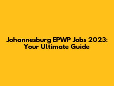 Johannesburg EPWP Jobs 2023: Your Ultimate Guide
