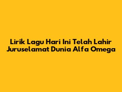Lirik Lagu Hari Ini Lahir Juruselamat Dunia: Alfa Omega