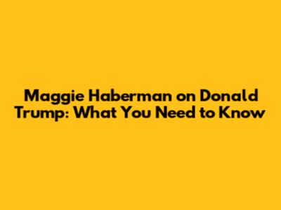 Maggie Haberman On Donald Trump: What You Need To Know