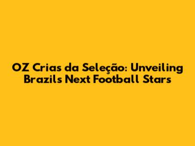 OZ Crias Da Seleção: Unveiling Brazil's Next Football Stars