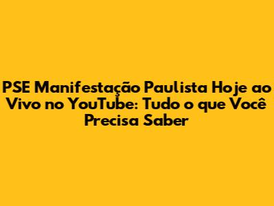 PSE Manifestação Paulista: Assista Ao Vivo No YouTube!